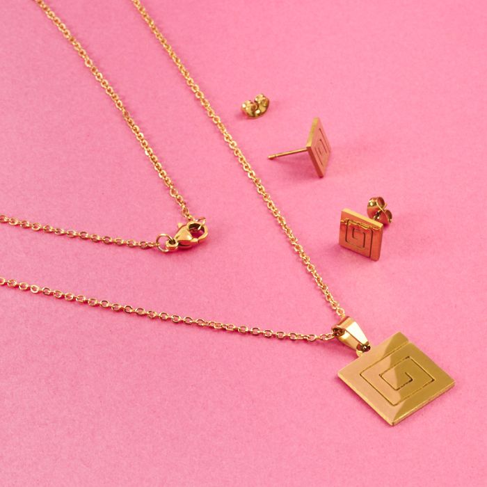 Komplet biżuterii ze stali chirurgicznej kwadrat zawijany w kolorze złotym 45cm