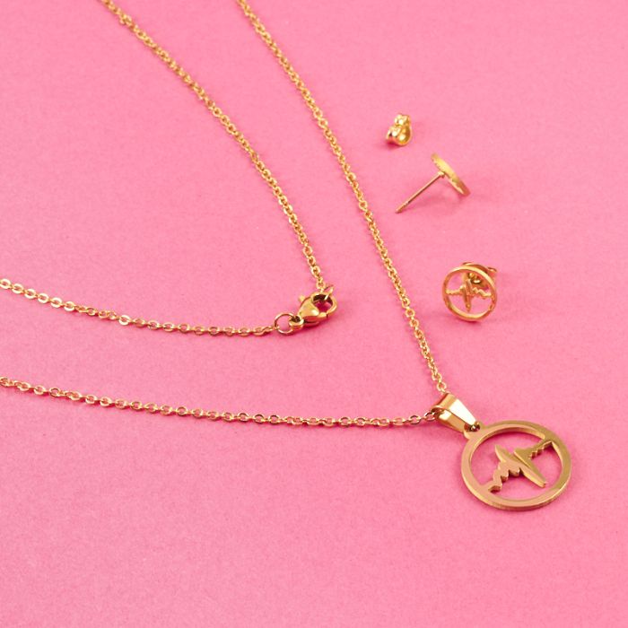 Komplet biżuterii ze stali chirurgicznej linia życia w kółku w kolorze złotym 45cm