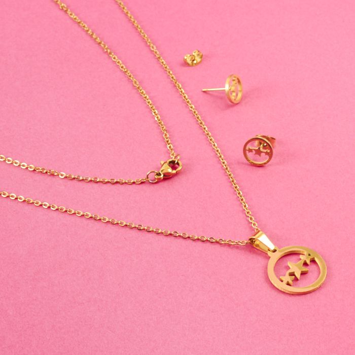 Komplet biżuterii ze stali chirurgicznej trzy gwiazdki w kolorze złotym 45cm