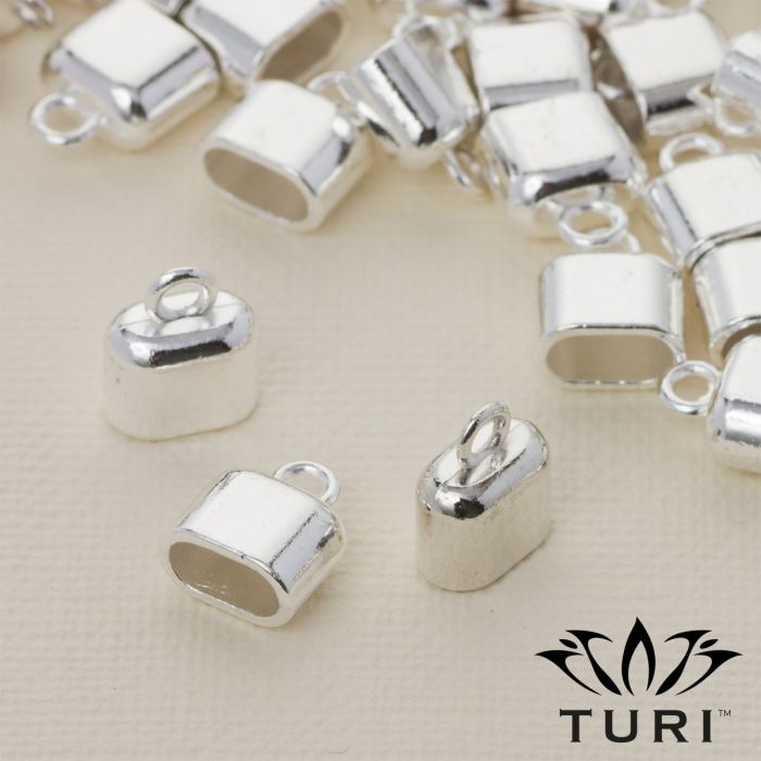 Końcówka do rzemieni gładka w srebrnym kolorze 7x3.5mm