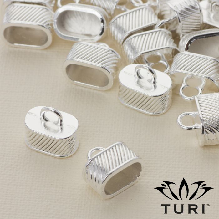 Końcówka do rzemieni z paseczkami w srebrnym kolorze 11.5x6.5mm