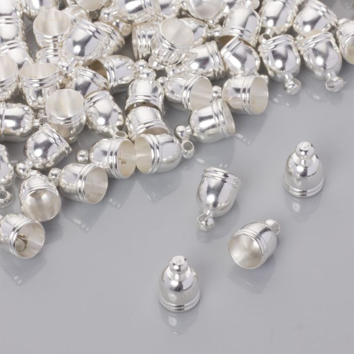 Końcówki do rzemieni i sznurków beczułki w srebrnym kolorze 6.5mm