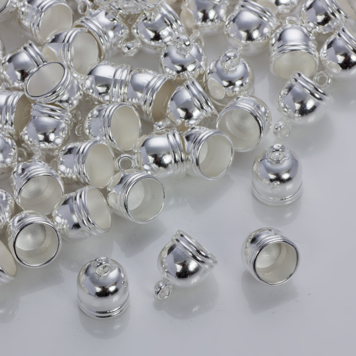 Końcówki do rzemieni i sznurków beczułki w srebrnym kolorze 8.5mm