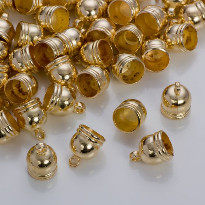 Końcówki do rzemieni i sznurków beczułki w złotym kolorze 9,5 mm