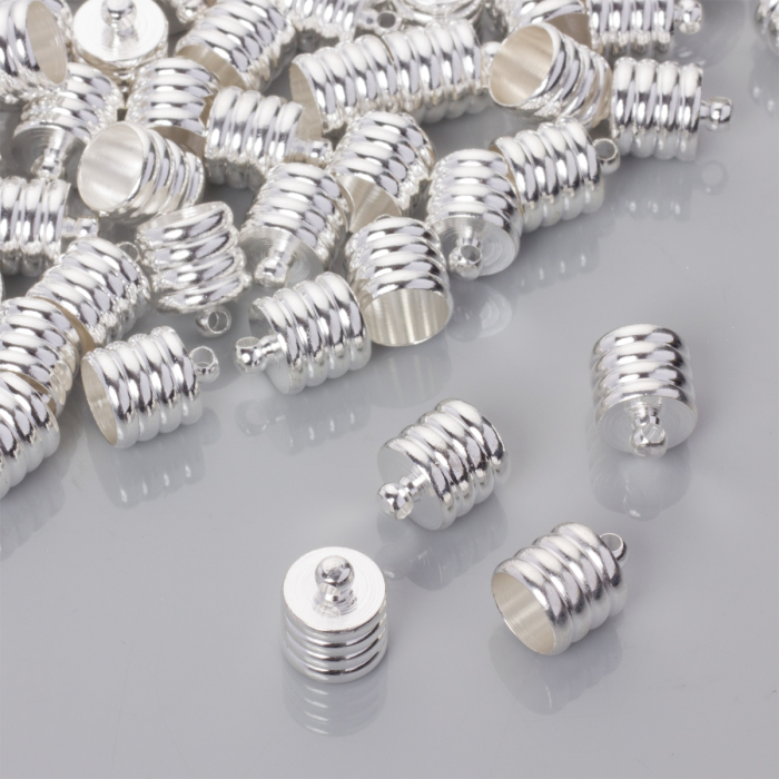 Końcówki do rzemieni rowkowane w srebrnym kolorze 8mm
