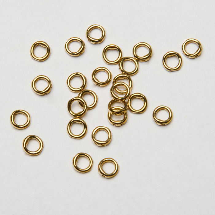 Okrągła końcówka do eleganckiego wykończenia biżuterii. Posiada dwa otwory 0,7 mm, przez które łatwo przeprowadzisz nić, linkę, gumkę lub sznurek. Złoty kolor świetnie współgra z perłami, kamieniami naturalnymi i hematytem.
