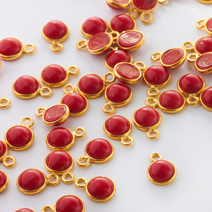 Gładki koral w okuciu srebrnym, pozłacanym, próby ag925, w kształcie półkola. Koral jest wypukły z jednej strony, z drugiej płaski. Na spodzie mogą występować nierówności i drobne przebarwienia. Zawieszka idealna zarówno do delikatnych kolczyków, naszyjnika, jak i bransoletki.Rozmiar w nazwie dotyczy rozmiaru korala i jest wartością orientacyjną.Ponieważ głównym elementem zawieszki jest koral poddawany obróbce, wielkość oraz kształt może nieco się różnić.
