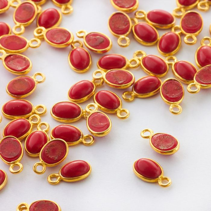 Koral klejony owal w okuciu zawieszka AG925 7mm