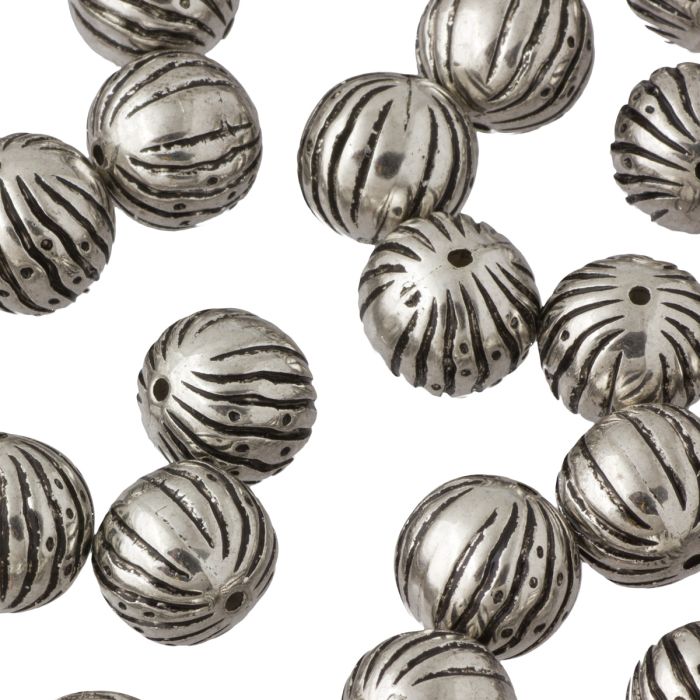 Koralik kulka rzeźbione pasy oksydowana 14mm