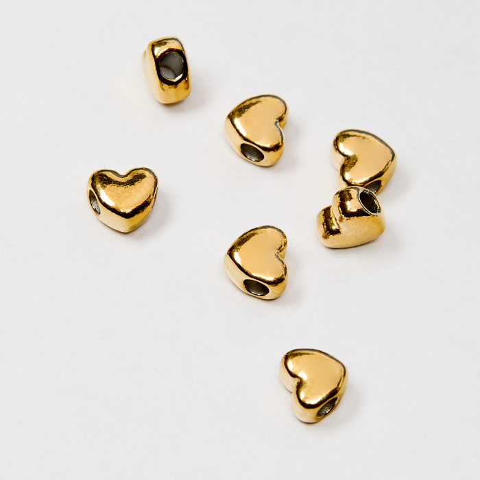 Koralik w kształcie serca 5,5x6 mm w złotym kolorze dodaje projektom ciepła i elegancji. Wykonany ze stali chirurgicznej w kolorze złotym, łączy trwałość i estetykę w projektach handmade. Rozmiar 5,5x6 mm jest uniwersalny do biżuterii codziennej i jako subtelna przekładka.