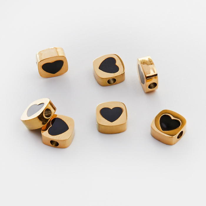Koralik ze stali chirurgicznej emaliowany czarne serce w kolorze złotym 8x8mm PVDTo uniwersalny element wykończeniowy i dekoracyjny do projektów jubilerskich. W biżuterii handmade stal chirurgiczna jest ceniona za dobry wygląd, odporność na korozję i wygodę codziennego użytkowania. Wykończenie w kolorze złotym uzyskane metodą PVD.Element ozdobny ze stali chirurgicznej może pełnić funkcję koralika, przekładki lub subtelnego detalu wykończeniowego w biżuterii handmade. Tego typu półfabrykaty pomagają uporządkować kompozycję, oddzielić większe elementy i nadać projektowi bardziej dopracowany wygląd.Rozmiar