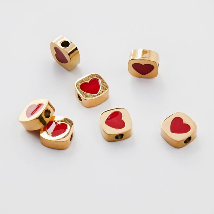 Koralik ze stali chirurgicznej emaliowany czerwone serce w kolorze złotym 8x8mm PVD