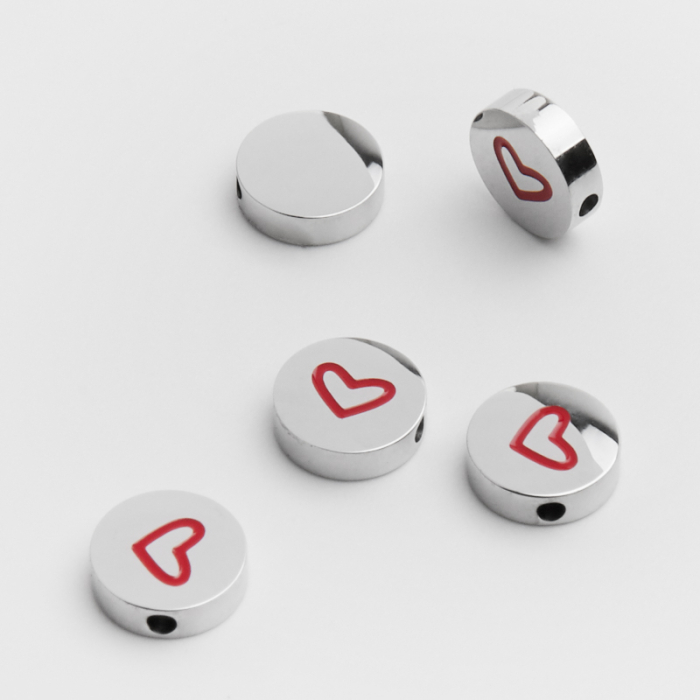 Koralik ze stali chirurgicznej krążek z serduszkiem emaliowanym w kolorze srebrnym 8mmTo funkcjonalny komponent do biżuterii handmade. Stal chirurgiczna dobrze sprawdza się w biżuterii noszonej na co dzień, ponieważ łączy trwałość z estetycznym wykończeniem.Element ozdobny ze stali chirurgicznej może pełnić funkcję koralika, przekładki lub subtelnego detalu wykończeniowego w biżuterii handmade. Tego typu półfabrykaty pomagają uporządkować kompozycję, oddzielić większe elementy i nadać projektowi bardziej dopracowany wygląd.Rozmiar
