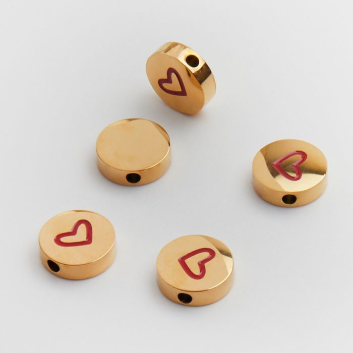 Koralik ze stali chirurgicznej krążek z serduszkiem emaliowanym w kolorze złotym 8mm PVD