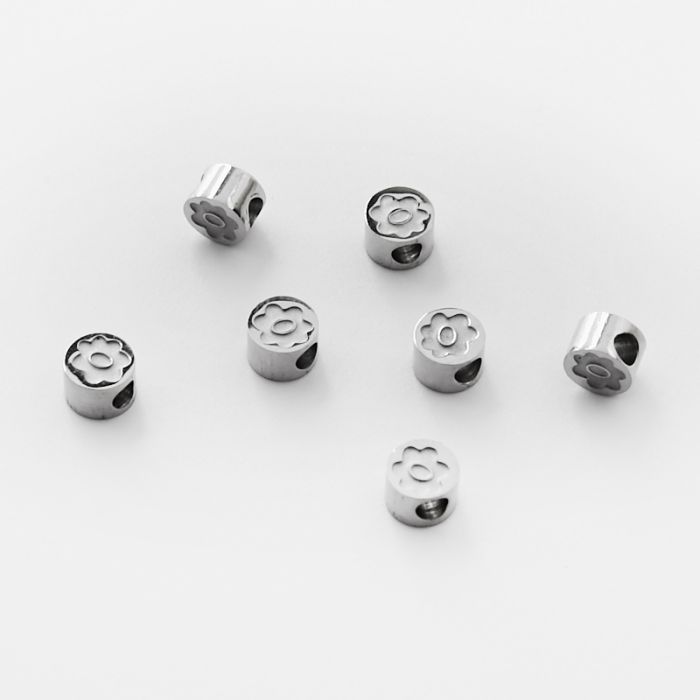 Koralik ze stali chirurgicznej okrągły z kwiatkiem w kolorze srebrnym 5mm