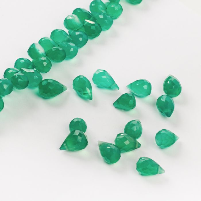 Kropla briolette fasetowana zielony onyks 7,5-11mm
