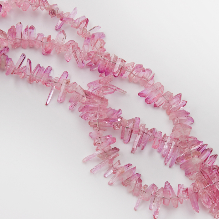 Kamienie naturalne wykonane z kryształu aura w kształcie grota nieregularnego. Kamienie cieniowane w kolorze różowym. Niektóre z kamieni mają przebarwienia mleczno-białe.*Ponieważ są to kamienie naturalne mogą się nieznacznie różnić od siebie rozmiarem.*Rozmiar podany w nazwie produktu jest wartością orientacyjną. Charakterystyka: