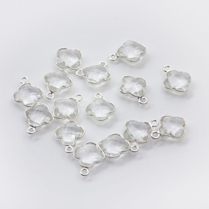 Kryształ górski koniczyna marokańska fasetowana w okuciu AG925 9mm