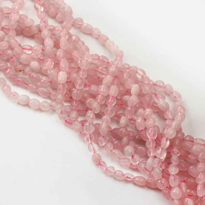 Kryształ górski różowy wyróżnia się tym, że transparentność lub lekka mleczność sprawiają, że pięknie odbija światło i optycznie rozjaśnia projekt. To uniwersalny kamień do bransoletek, naszyjników i kolczyków handmade.