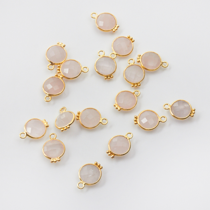 Kryształ górski różowy krążek w okuciu pozłacany 8mm