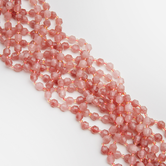 Kryształ górski truskawkowy baryłka fasetowana 8mm