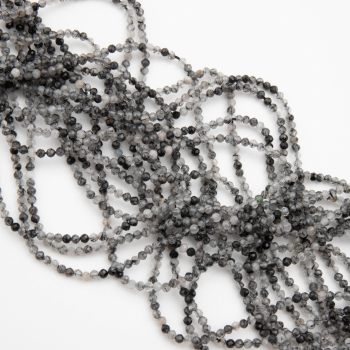 Kryształ górski z czarnym rutylem kulka fasetowana 2mm