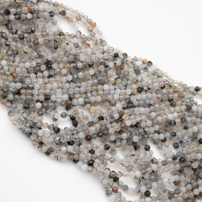 Kryształ górski z czarnym rutylem kulka fasetowana 3mm