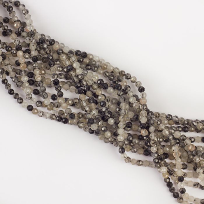 Kryształ górski z czarnym rutylem kulka fasetowana 4mm