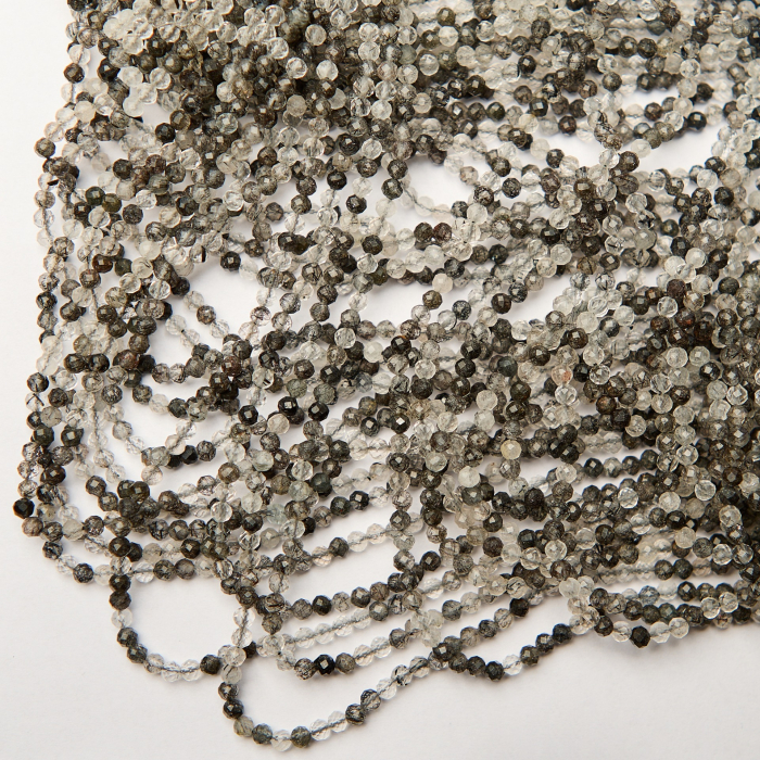 Kryształ górski z czarnym rutylem wyróżnia się tym, że transparentność lub lekka mleczność sprawiają, że pięknie odbija światło i optycznie rozjaśnia projekt. To uniwersalny kamień do bransoletek, naszyjników i kolczyków handmade.