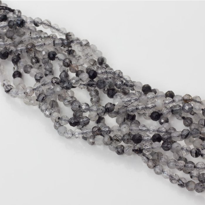 Kryształ górski z czarnym turmalinem kulka fasetowana 4mm