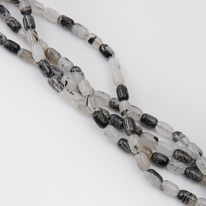 Kryształ górski z czarnym turmalinem wyróżnia się tym, że kontrastowe inkluzje czarnego turmalinu tworzą wyrazisty, naturalny wzór. Dzięki temu kamień świetnie sprawdza się w nowoczesnych bransoletkach i naszyjnikach handmade.