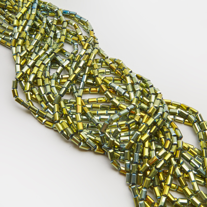 Kryształki słupki fasetowane metallic green 4,5x8,5mm
