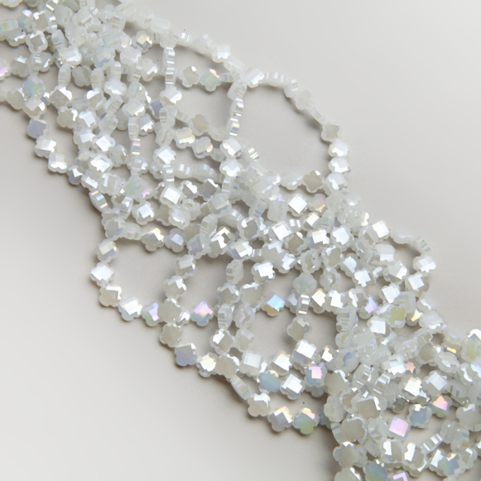 Kryształłki koniczyna marokańska fasetowana ceramic white AB 8mm