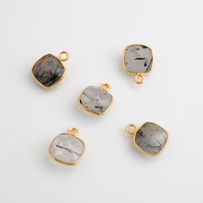 Kwarc z rutylem krążek fasetowany zawieszka w okuciu pozłacanym AG925 8mm