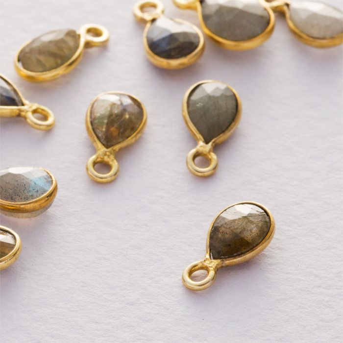 Labradoryt fasetowany łezka zawieszka w okuciu pozłacanym AG925 10x7mm