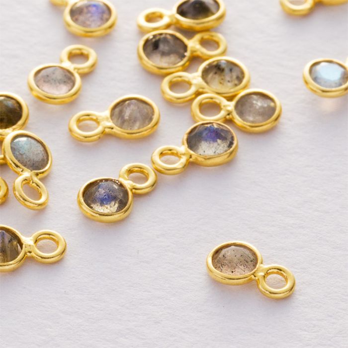 Labradoryt krążek fasetowany zawieszka w okuciu pozłacanym AG925 8x5mm