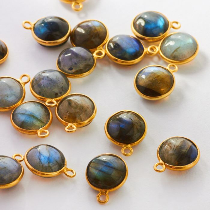 Labradoryt krążek gładki w okuciu AG925 10mm