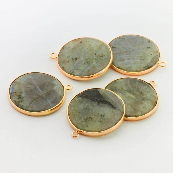 Labradoryt krążek gładki w okuciu zawieszka 31,5mm