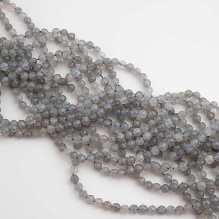 Fasetowane kulki labradorytu w kolorze jasnoszarym z efektem labradoryzacji. *Ponieważ są to kamienie naturalne mogą się nieznacznie różnić od siebie rozmiarem.*Rozmiar podany w nazwie produktu jest wartością orientacyjną. Charakterystyka: