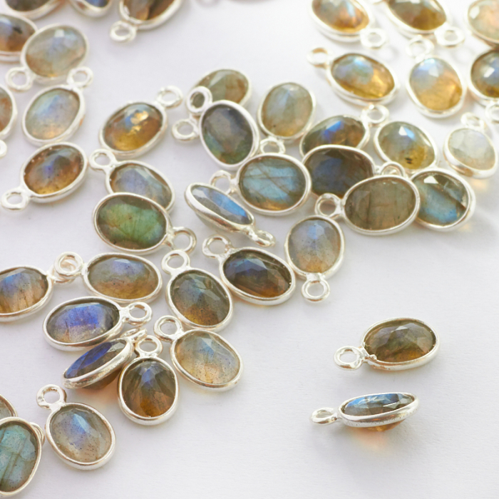 Labradoryt owal fasetowany w okuciu zawieszka AG925 7mm