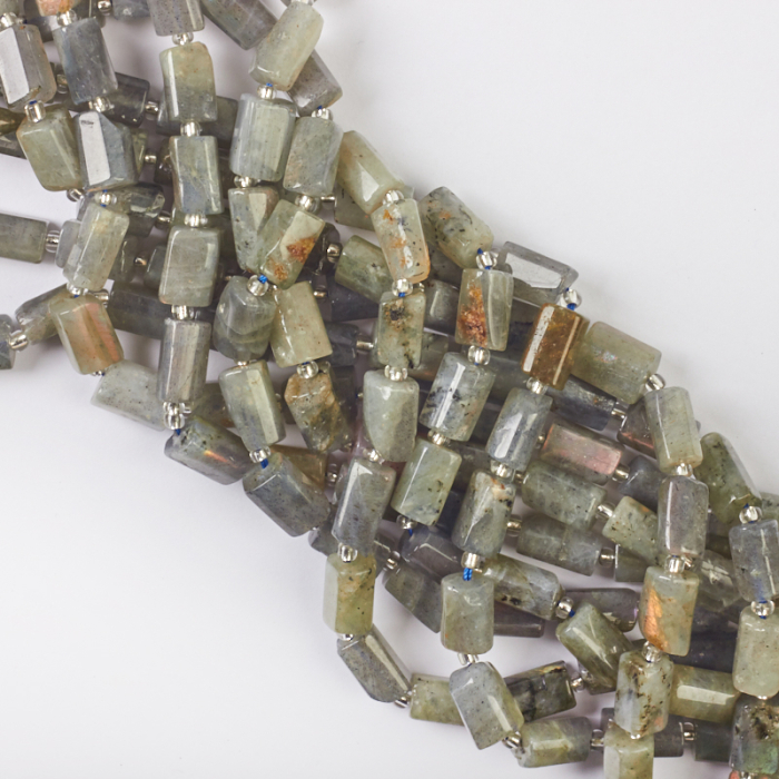 Kamienie naturalne wykonane z labradorytu w kształcie słupka ciosanego. Dominujący kolor to szary, wymieszany z zielenią oraz różem. Kamienie posiadają naturalne przebarwienia oraz wrostki. Posiadają naturalnie powstałe wyżłobienia.*Ponieważ są to kamienie naturalne mogą się nieznacznie różnić od siebie rozmiarem.*Rozmiar podany w nazwie produktu jest wartością orientacyjną. Charakterystyka: