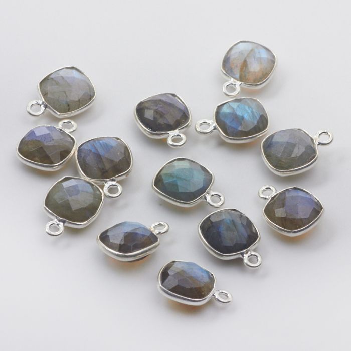 Labradoryt zawieszka kwadrat w srebrny okuciu AG925 8mm