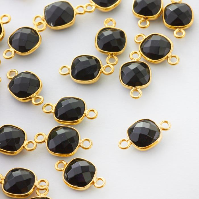 Łącznik onyks fasetowany w okuciu pozłacanym AG925 8mm