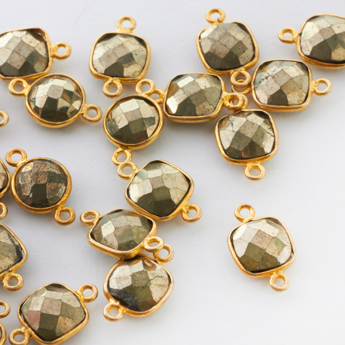 Łącznik piryt fasetowany w okuciu pozłacanym AG925 7mm