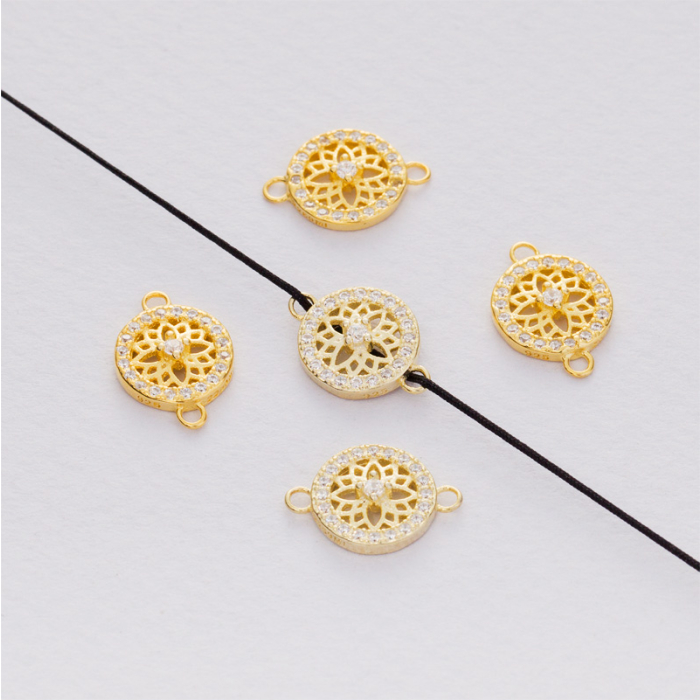 Łącznik z cyrkoniami kółko AG925 pozłacany 9x14mm