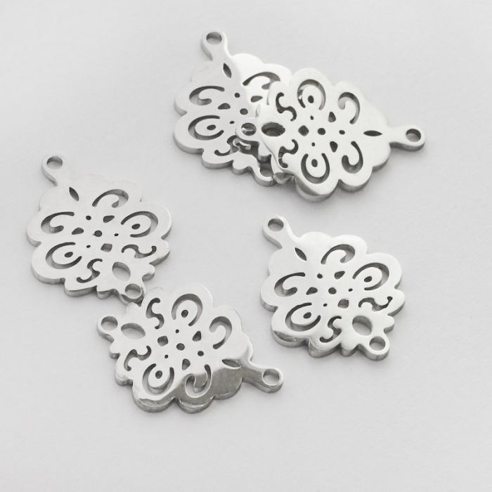 Łącznik ze stali chirurgicznej ażurowy w kolorze srebrnym 19,5mm