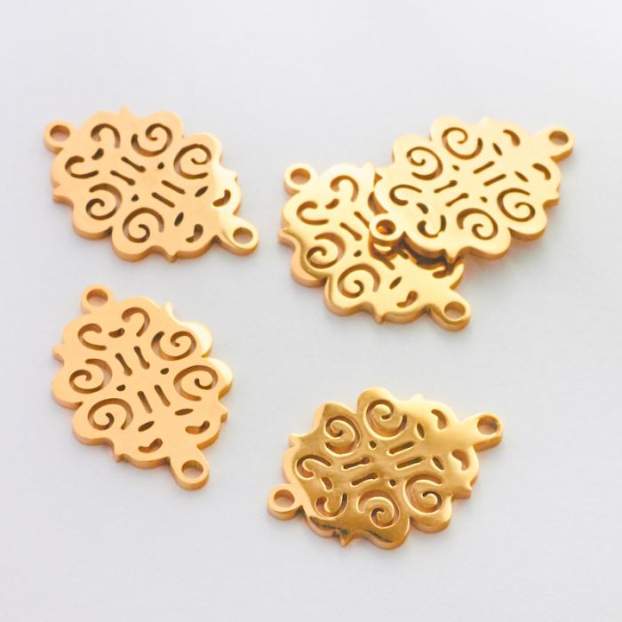 Łącznik ze stali chirurgicznej ażurowy w kolorze złotym 19mm