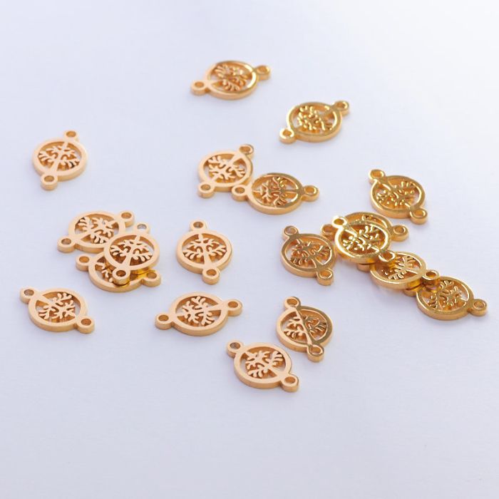 Łącznik ze stali chirurgicznej drzewo życia w kółku w kolorze złotym 11,8mm