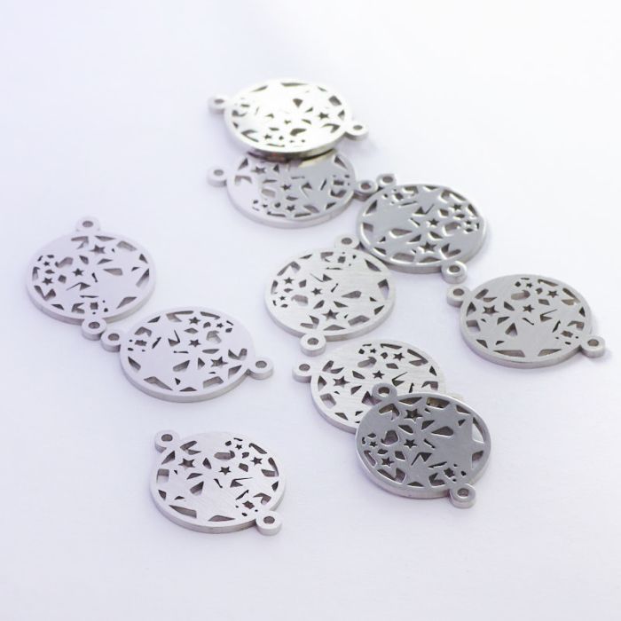 Łącznik ze stali chirurgicznej gwiazdki w kółku w kolorze srebrnym 20mm