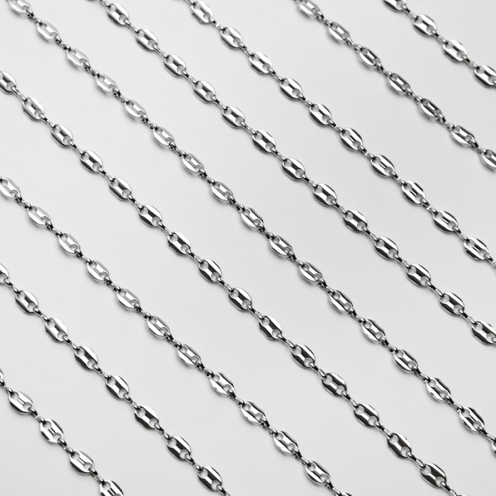 srebrny ułatwia dopasowanie łańcuszka do pozostałych elementów ze stali szlachetnej.To funkcjonalny komponent do biżuterii handmade oraz gotowych realizacji o nowoczesnym wyglądzie.